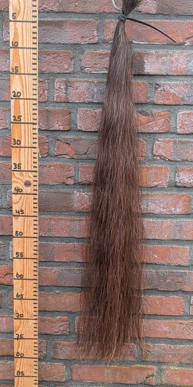 Is afkomstig van Nederlandse en Belgische paarden. Elke staart is uniek. Dat is ook de reden dat je maar 1 stuk per staart kunt kiezen en dat alle staarten verschillend zijn in kleur, lengte en structuur.