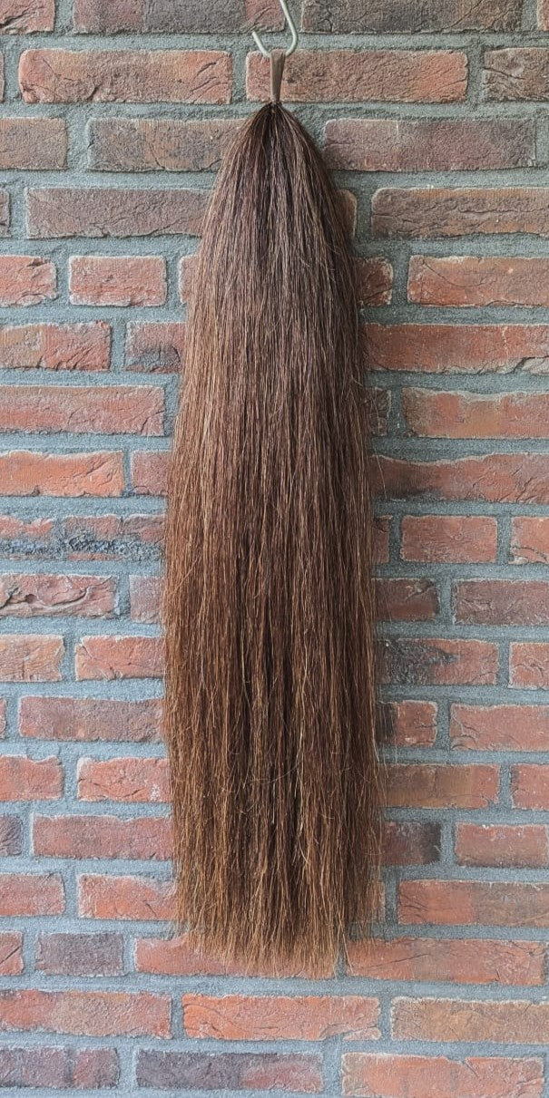 Gemaakt van 100% echt paardenhaar van Mongolische paarden. Dit haar staat bekend om de stevige structuur en elasticiteit waardoor je staart jarenlang mee gaat.